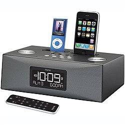 so i was primarily looking for an alarm clock/charger for my ipod touch 3g. i came across this and discovered it did just that and more: its dual dock! so it charges my nano 4g as well. WIN. this is my first ihome and i am thoroughly impressed. the unit doesnt look or feel cheap at all. the sound is incredible; my dad heard it and thought it was one of the smaller bose speakers. the remote control is about as thick as the touch, as wide as the nano, and weighs about the same as the nano. which means i might lose the control soon if i dont pick up a habit of leaving it in the same place over and over again. the price may be a bit steep, but the dual dock makes up for it since most households have more than one ipod.